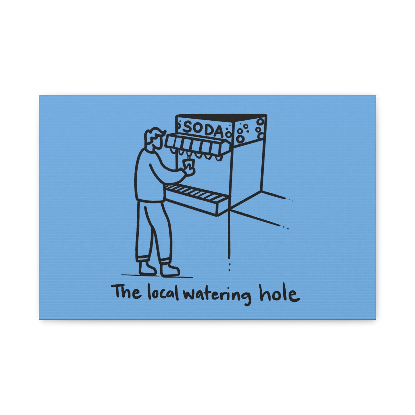 Our Local Watering Hole design on canvas wall art. Check out our Local Watering Hole design and variations on tees, long sleeve t-shirts, sweatshirts, hoodies, mugs, tote bags and canvases!