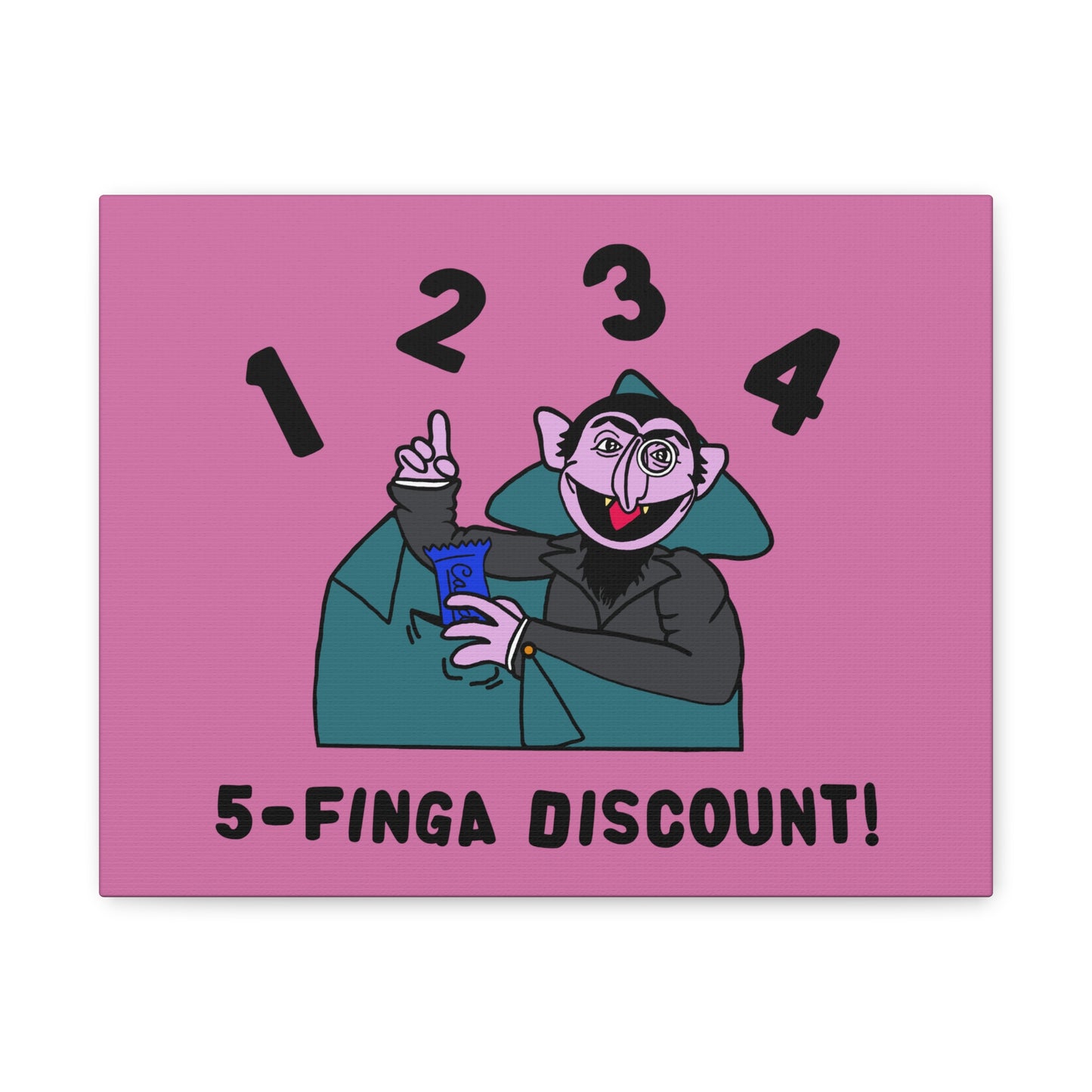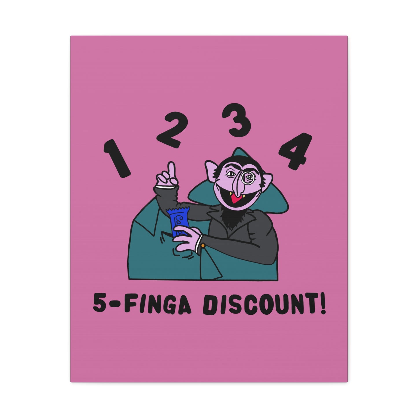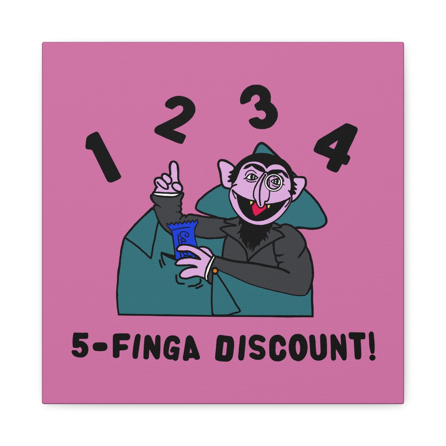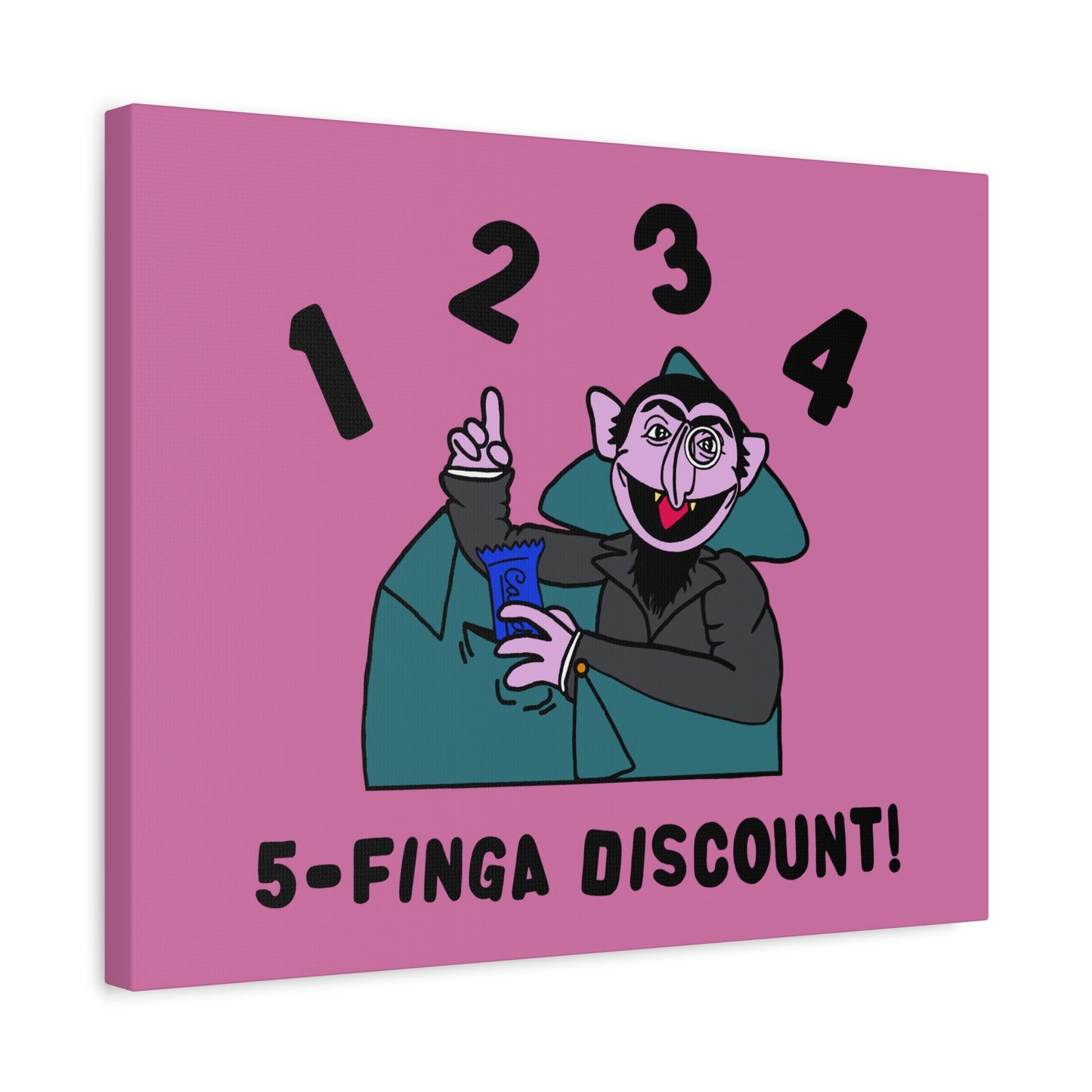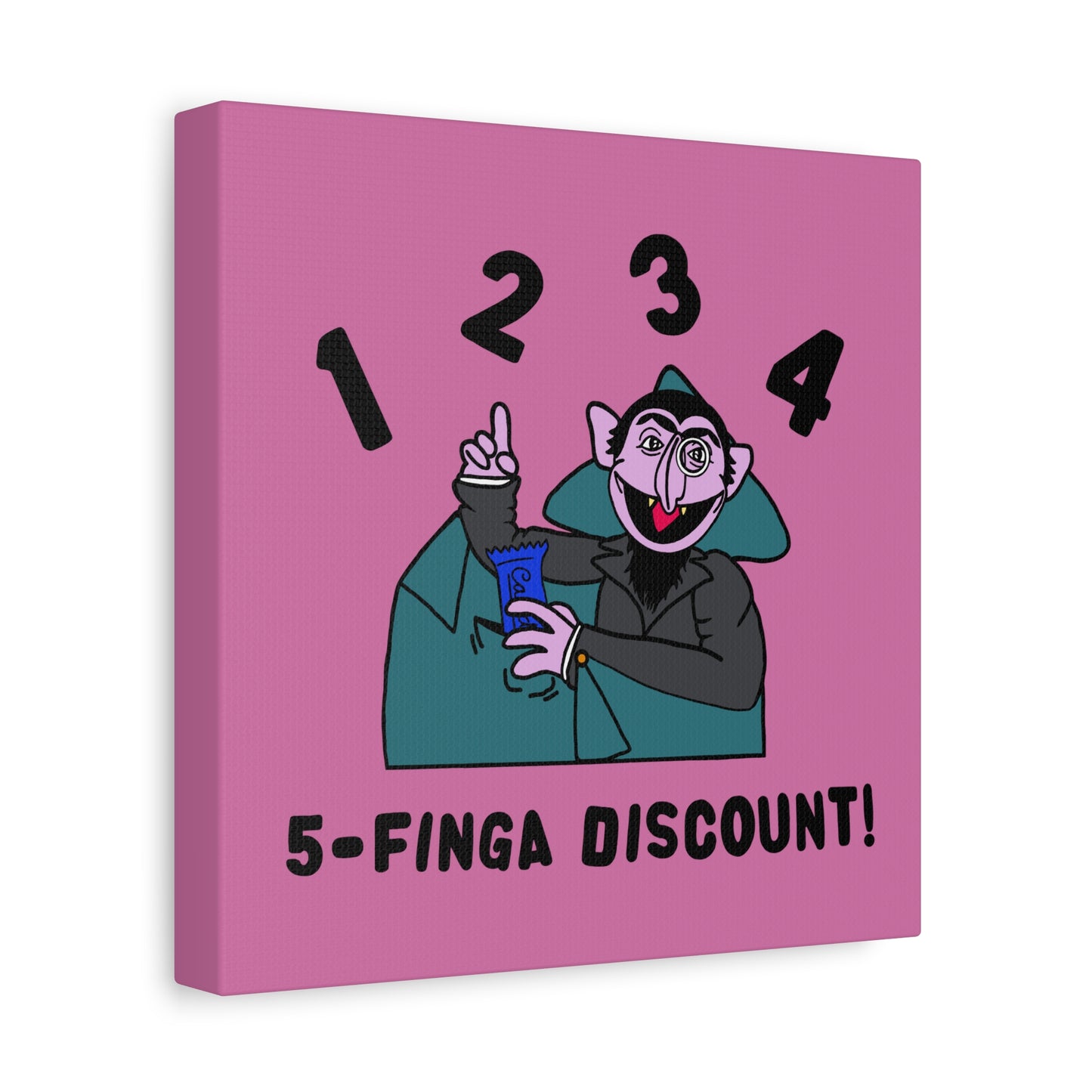 Five Finger Discount Canvas Print Light Pink - Sesame Street The Count Parody Art Print