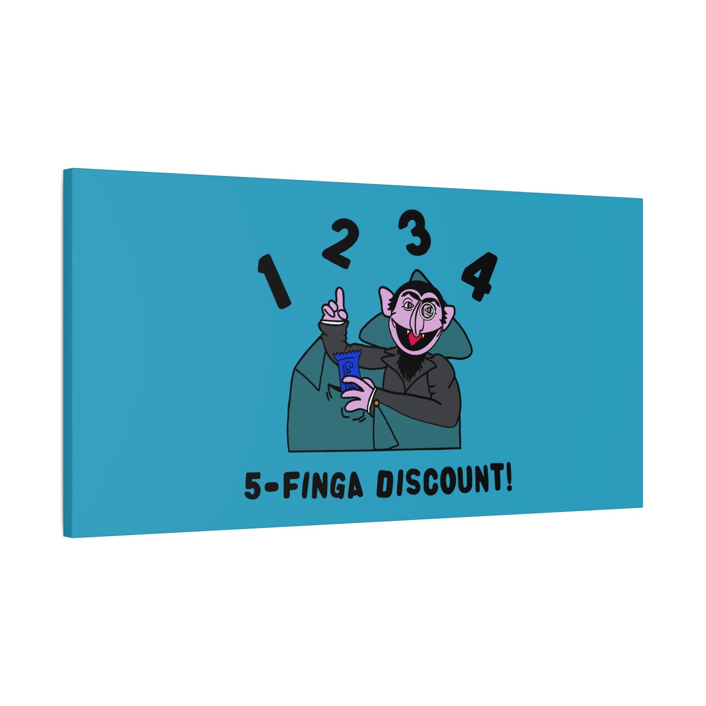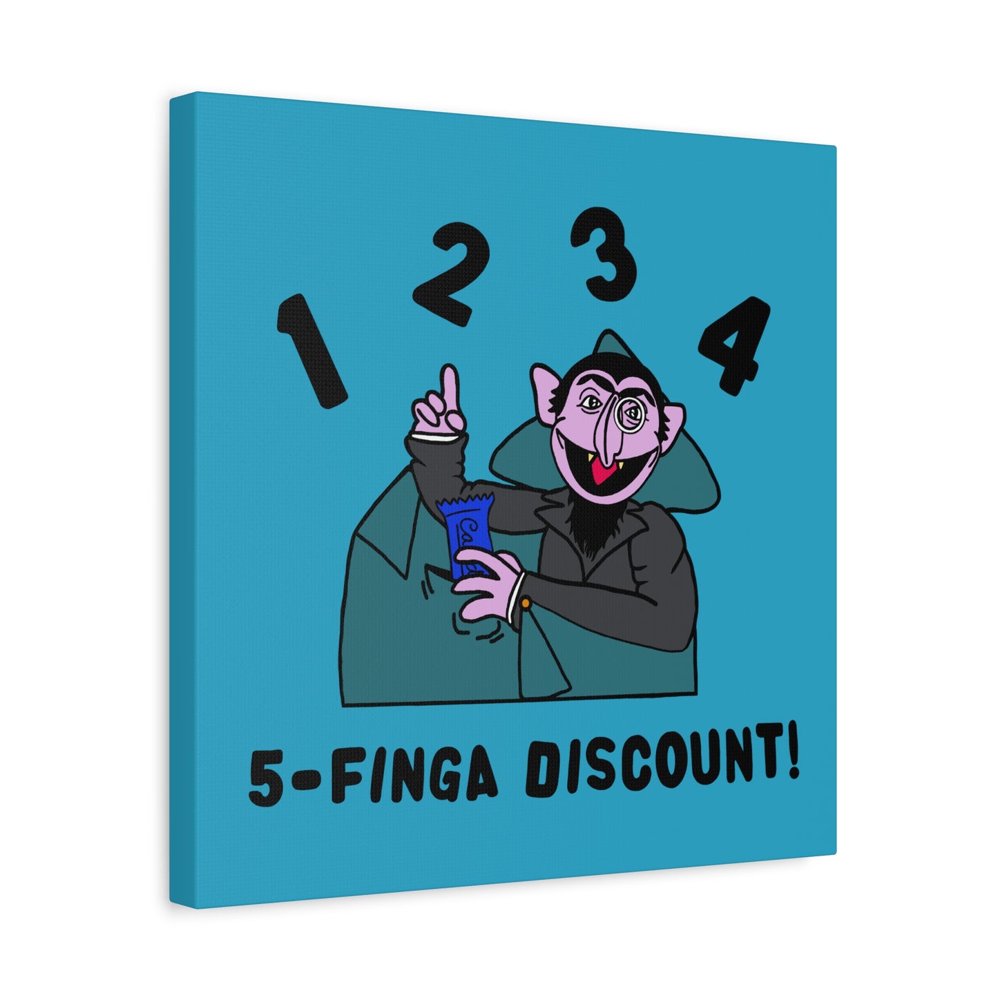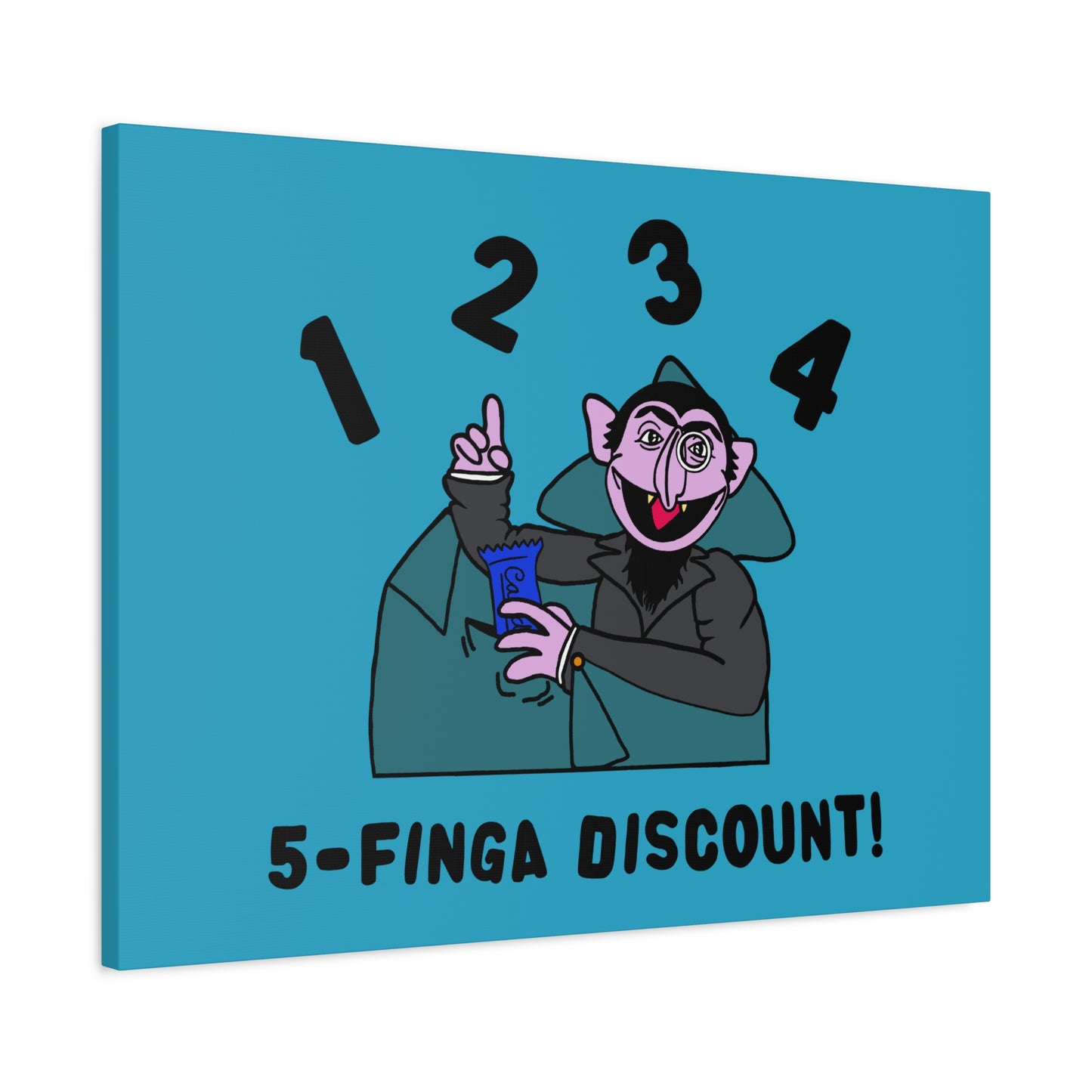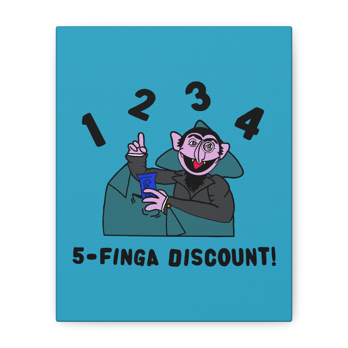 Five Finger Discount Canvas Print Turquoise - Sesame Street The Count Parody Art Print